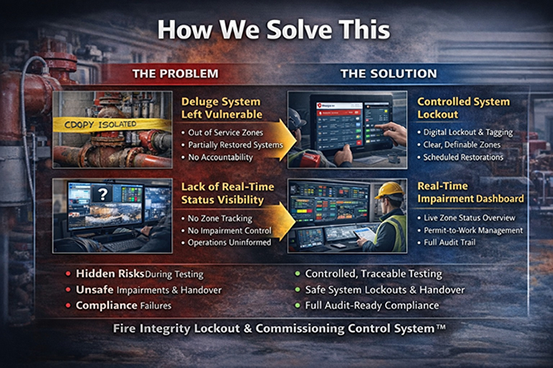 Fire systems fail at the moment of need not because they were never installed, but because they are impaired, mismanaged or never properly verified in the first place. Impairments are buried in emails, permits and spreadsheets; commissioning reports sit in binders; no one has a live, plant‑wide picture of what is genuinely protected right now.